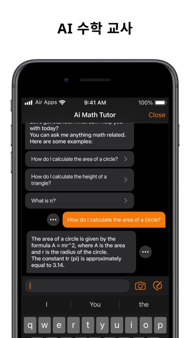 AI로 수학 문제를 쉽게 해결하세요. 우리의 AI 구동 수학 솔버로 수학 학습 및 문제 해결 과정을 간소화하세요. 카메라로 즉각적으로 수학 문제를 해결하고, 단계별 설명을 받으며, 시험 준비를 하고, 뇌 훈련을 통해 기술을 향상시키고, 학생 및 전문가를 위한 수학 과정을 이용하세요. 지금 다운로드하여 수학적 잠재력을 최대한 활용하세요! 주요 특징들: - 사진을 찍어 수학 문제를 즉시 해결하세요. - AI 수학 교사로부터 단계별 솔루션과 설명을 받으세요. - 과학 계산기와 통화 변환기 기능에 접근하세요. - 수학 숙제에 대한 전문가의 도움을 받으세요. - 다가오는 시험에 대비해 효과적으로 준비하세요. - 뇌 훈련 운동으로 논리적 사고와 두뇌의 힘을 강화하세요. - 중학교에서 대학까지, 그리고 회계, 마케팅, 비즈니스 분석, 데이터 분석, 통계, 재무 분석, 부동산 분석, 엔지니어링 등 전문 분야까지 다양한 수학 과정을 탐색하세요. 최고의 구독인 Air Apps One으로 경험을 최적화하세요. 이 앱을 구독하면 추가 비용 없이 Air Apps One에 자동으로 액세스할 수 있습니다. Air Apps One을 사용하면 하나의 가격으로 30개 이상의 놀라운 앱을 즐길 수 있습니다. 업무, 학습, 피트니스, 창의성을 위한 도구를 모두 한곳에서 이용하세요. 한 번의 클릭으로 30개 이상의 앱을 구독할 수 있습니다. 칼로리 추적이나 작업 정리와 같은 작업을 위해 매일 Air Apps One을 사용하세요. 지금 가입하여 일상 생활을 더 좋고 생산적으로 만들어줄 인기 앱 컬렉션과 특별 할인 혜택을 누리세요. 다른 구독 옵션 중에서 선택하십시오. 표준 구독 옵션은 다음과 같습니다. - 1 주 구독 - 1 개월 구독 - 1 년 가입 --- 구독 결제는 구매 확인 및 각 갱신 기간을 시작하면 iTunes 계정에 청구됩니다. 무료 평가판 기간이있는 구독은 유료 구독으로 자동 갱신됩니다. 각 현재 구독 기간이 끝나기 전에 24 시간 이상 iTunes 설정에서 구독 또는 무료 평가판을 취소 할 수 있습니다. 취소는 현재 가입 기간의 마지막 날 이후에 시행되며 무료 서비스로 다운 그레이드됩니다. 무료 평가판 기간 동안 프리미엄 구독을 구매할 때 무료 평가판 기간 (제공되는 경우)의 미사용 부분은 상실됩니다. 저희와 연결하세요: 웹: https://airapps.co Linkedin: https://www.linkedin.com/company/airapps Instagram: https://www.instagram.com/airappsco Facebook : https://www.facebook.com/airappsco 개인정보 보호정책: https://airapps.co/privacy 이용 약관: https://airapps.co/terms 지원: [email protected]로 문의하세요