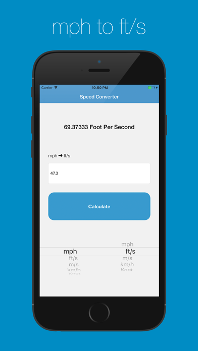 Use Speed Converter to convert speed units easily and quickly. Convert meters per second the kilometers per hour with the tap of a button or miles per hour to foot per second. Mix and Match units to allow for simple and accurate conversion.