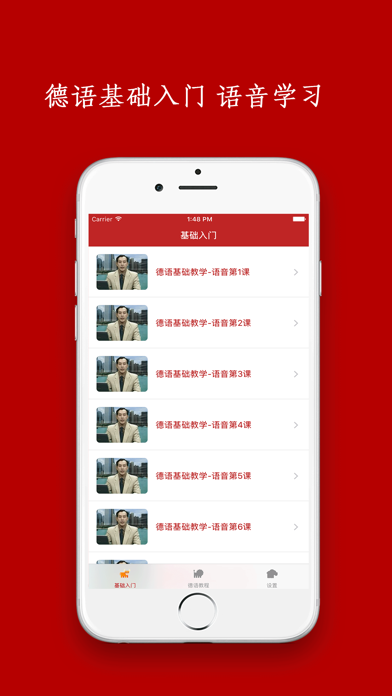 本应用搜集网罗了各类精品高清德语视频教程,适合所有想学习德语和对德语感兴趣的人群,提供德语听力、德语口语等德语学习资料,简单而实用,包含了最常用的基础德语口语与短语,随身携带的德语老师,打造一口流利德语。操作简便,界面直观,内容丰富,是学习德语的好帮手。 在上班路上或者休息时间,边听边学,省时省力。 让德语入门学习效率翻倍,快速提升德语水平。 【App完全免费,并且没有内付费,请放心下载】 【德语入门提高技能必备应用,德语学习神器】 本app的特点: 1. 常用句型: 汇整食衣住行育乐,生活常用句数百则,让您即使没基础也能透过老师讲解以及真人发音学习轻松开口说德语。 2. 真人教学: 由留学德国,教学经验丰富的专业韩文教师实际教学,如同课堂的上课体验,让您学习精准的发音。 3. 单词: 句型中出现的单词以及相关字替换,让您贯彻了解句型以及单词涵义。 4. 句子翻译: 透过清楚的讲解及情境描述让您可以学习造句并实际应用句子。 5. 类似词介绍: 介绍类似的单字以及用法比较,让您轻松区分并搞懂不同对象及场合适用的句型及单字。