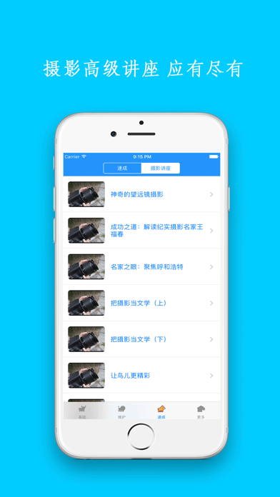 轻松学摄影,是一款摄影爱好者get新技能必备的App。 汇集众多精品摄影高清教学视频包括摄影基础知识、入门与速成摄影技术构图、单反相机知识、单反镜头知识、工艺品拍摄、包装盒拍摄、相机的维护等。 提供最实用的摄影技术讯息,精选全球杰出的摄影作品,介绍新鲜的摄影潮流、探讨各类器材装备,单反、微单,从摄影入门到专业技巧,从风景写实到人体艺术,从家庭摄影到商业摄影,从数码单反到胶片旁轴,摄影玩家不可不看的价值内容。 完全免费哦,喜欢摄影的你值得拥有。