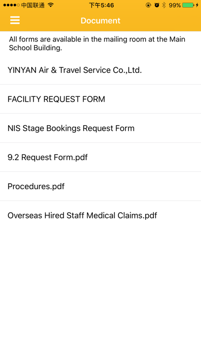 NIS China is a service program made especially for all staff of Nanjing International School (NIS). It introduces daily operation services provided by the School Operations and Finance Team and related service procedures. In addition, NIS users can send emails from their mobile devices to the person in charge of related service by clicking the name. The News function presents the latest School Weekly Bulletin, and an introduction of Nanjing city such as restaurants, supermarkets and bakery etc.