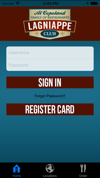 If you belong to The Al Copeland Family of Restaurants Lagniappe Club or want to learn about earning rewards for dining out, you will love this app! Download it today for free and you’ll be able to: •Register your card and begin earning rewards today. •Find a Copeland's or Cheesecake Bistro that’s closest to your location. •Check out our menu. •View your member account balance and your rewards. •Check in to let us know you’ve arrived – and get points for visits. •Get notifications from us announcing new menu items, special events, and more!