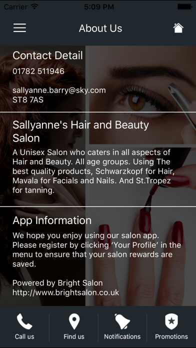 A free salon app providing client loyalty scheme, last minute appointments, click-to-call and salon information.