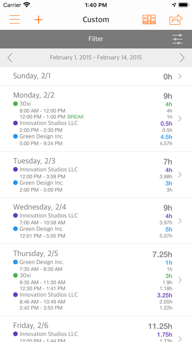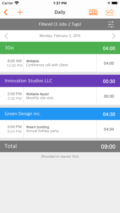 Are you a freelancer or contractor? Do you manually keep track of your timesheets? Are you tired of constantly forgetting on Friday how many hours you worked on Monday? Whether you work one job site or multiple on a given day, this app is for you. Easy Hours Lite is the new way to track time just by having your device. Free yourself. Start using Easy Hours Lite today. TIMESHEETS See how your time is spent from week to week even when the device is offline. Easy Hours summarizes your weekly activities so that you can spend your time doing instead of remembering. Whether you work Saturday to Friday or Monday to Sunday, you decide how you manage your week. We provide weekly and daily views of all time entries. DASHBOARDS Do you work multiple projects on a given day? We provide Yearly, Monthly, Weekly, Daily and Custom summaries of your time across all jobs. With advanced filter capability, view your Dashboard your way. Now with the Job dashboard you have an efficient way to swipe through all your jobs for the current day, start / stop time, take a break, add memos and more. Whether you need the convenience of a bi-weekly dashboard or a dashboard with a 90 day interval, we've got you covered. Simply set a date range in the Custom dashboard and let Easy Hours do the heavy lifting. CHARTS Visualize your time with Charts. We support Pie Charts, Line Charts and Bar Charts. Want to share your Chart with someone else? We've got that too! TIME TRACKING Pause and restart time tracking with the tap of a button. Taking a break was never so easy. Edit times with a few taps of a button. Add new times because you accidentally left your device at home. With shortcuts for Now, Morning, Afternoon, Evening, :00, :15, :30 and :45, changing time is easy and fast. You can even split your time entry and Easy Hours will copy over any tags and memos. MEMOS Need to keep track of what you did at a particular time on a given day? Easy Hours allows you to attach notes that you can use to remind yourself. TAGS Tag your times with keywords such as "paid", "holiday" or "lunch break". Multiple tags can be applied to a time entry and you can re-use tags. Tags can also be applied in bulk to a set of time entries filtered by date range, jobs and/or tags. FILTERING More powerful filtering that works hand in gloves with your tags. Filter using Jobs, Tags or any combination of both. Sharing uses Filters just like you would expect too. COLORS Use colors to uniquely customize your jobs and your reports. ROUNDING Do you prefer round numbers when calculating your total hours? Personalize your timesheet to calculate your total hours exactly as you want it. CURRENCY Use a different currency to bill your clients? We provide support for most currency combinations with the exception of Federation and Galactic Credits. LANDSCAPE Unlike some of our competitors, yes we support landscape! Go on and rotate your device, we dare you! 3D TOUCH For those with compatible devices, 3D Touch has been incorporated to make usage more fun and exciting. Use 3D Touch to jump to your Weekly, Monthly, Custom Dashboards or Charts. SHARE TIME With the convenience of sharing by Email, AirPrint, DropBox, AirDrop, Numbers and more you can let anyone, including yourself, know exactly how long you have been working on a task. We even attach a CSV file to the email for convenient importing into any app. Whether you share time from your weekly, monthly, yearly or custom dashboard the export has that great look and feel you expect, too. You can even personalize your report by choosing a color theme, your Name and Organization, choosing your export format and whether to include individual time entries. We even include your memos. PERSONALIZED DAILY REMINDERS Easy Hours lets you decide if you’ve spent too much time on a task. It is smart enough to know when you should call it a day. We provide personalized reminders instead of the usual plain old notifications.