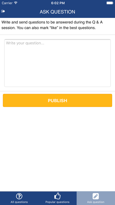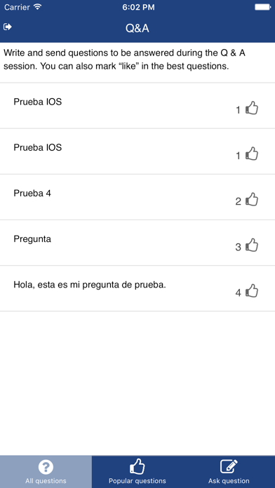 Application for Q & A during corporate events. This application was developed for the purpose of conducting Q & A dynamics during Americas corporate events. Aplicación destinada a la realización del Q&A durante los eventos corporativos. Esta aplicación fue desarrollada con el propósito de realizar la dinámica de Preguntas y Respuesta durante los eventos corporativos de Americas.