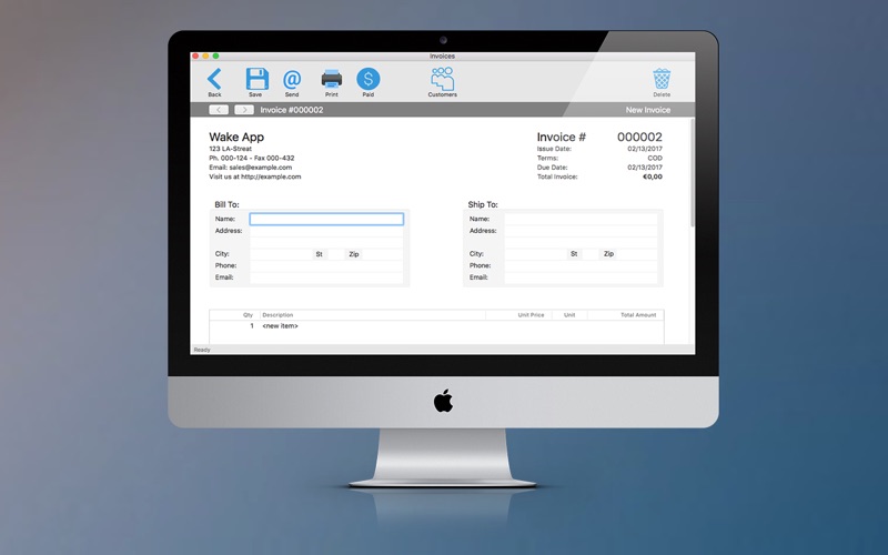 쉬운 프로그램 사용하기 쉽고 직관적입니다. 모두에게 적합하다. 대기업과 중소기업 모두 인보이스로 할 수있는 것 : ● 송장 생성 가능 ● 개인 데이터베이스에 고객을 둔다. ● 가져 오기 및 내보내기 세금에 따라 사용자 정의 송장 작성 ● 회사의 개인 데이터를 항상 클릭 만하면됩니다. ● 전자 메일로 보내기 쉬운 모드에서 송장 ● 지불 및 채무를 알고 있음 ● PDF로 내보내기 등등.