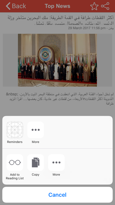 Top Oman News, Oman’s fastest news app provides breaking news alerts from trusted daily national and international newspapers in Arabic & English languages. Top Oman News app brings all the headlines of major newspapers in the palm of your hand.If you want to stay up to date with what happens in your country and use as little time as possible, then this app is what you need! It is a News Aggregator App but unlike other feature rich news readers, it will bring you directly to the news without wasting any time messing around with the user interface or news loading. Stay informed with breaking news alerts. Top Oman News offers fast, simple and clean reading experience to avid news readers in Oman and abroad. Stay up to date with everything that matters in the Oman. It is the best app for the daily reader. Download Top Oman News and get started today—it’s free! FEATURES * Very fast, intuitive and lightweight newsreader * Immediate & simple to use * Optimized for low bandwidth usage * Share the news with friends through mail, social networks, Facebook, Twitter, WhatsApp or any other app you have installed * Swipe Left – Right to quickly read news articles like reading a magazine * Bookmark articles to read later * Get fastest breaking news push notification alerts * Customize your app theme color * The best for the daily reader SUPPORTED NEWSPAPERS - Times of Oman - وطن - جريدة عمان - جريدة الرؤية العمانية - سولف - الرئيسية - Muscat Daily - الوطن Disclaimer – All copyrights©, trademarks™, registered® materials, icons, contents, logos, graphics, images and/or data are property of their respective owners.