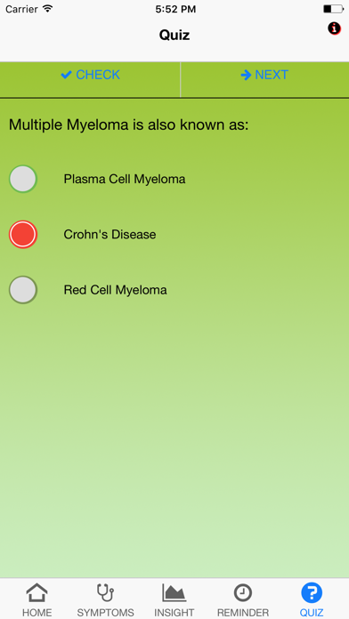 Signs & Symptoms Mutliple Myeloma helps patients self-manage Mutliple Myeloma, using interactive tools. This app gives patients important information regarding signs and symptoms of Mutliple Myeloma and management of the disease. This app also allows patients to keep track of Mutliple Myeloma along time with an incredible graphing option. These records can then be shown to a doctor who can in turn use them to improve the patients’ quality of life. This app also allows patients to remember when and which medication to take to manage Mutliple Myeloma. Besides, users can test their knowledge regarding Mutliple Myeloma in an amusing way through a little and funny quiz. Some information provided may not be valid for residents of other countries due to variations in medical practice and drug approval. This patient education application provides patients and Health Care Practitioners with easy-to-access information on Mutliple Myeloma management.