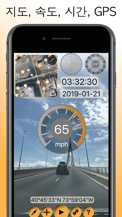 '레이싱 비디오 카메라'는 지도, 속도, 위치, 고도, 지포스, 나침반, 시간, 일자 등의 계기판을 내장 비디오 카메라로 촬영한 시점의 액션 비디오 동영상에 직접 렌더링합니다. '레이싱 비디오 카메라'는 기기를 최고의 액션 카메라로 만듭니다. 이러한 도구를 화면에 표시할 뿐만 아니라 MPEG-4 비디오로 렌더링합니다. '전방표시장치' 도구는 비디오 프레임 내에서 설정이 가능하고 자유롭게 이동 및 확장이 가능합니다. ► '레이싱 비디오 카메라' 앱 '레이싱 비디오 카메라'는 스포츠 중 또는 촬영된 액션 비디오에서 지도 위치, 속도, 지포스, 위치, 고도, 진행방향, 나침반, 지속시간, 거리, 롤, 피치, 일자, 시간을 드러내고 싶은 경우 사용할 수 있습니다. 대표적인 스포츠: 자동차 레이싱 (온보드 카메라), 산악 자전거, 스케이트, 스키, 항해, 하이킹, 서핑, 비행, 카이팅 또는 기타 빠른 움직임이 있는 스포츠 활동. ► '레이싱 비디오 카메라'에서 사용가능한 도구 • 속도 : 현재 속도를 나타내는 그래픽 도구 • 지도 : 지도 상에 현재 위치를 나타내는 그래픽 도구 (위성 또는 일반) • 진행방향 : 현재의 자기 나침반 선수각을 나타내는 그래픽 도구; 진북을 기준 • 코스 : 현재 이동 코스 벡터를 나타내는 그래픽 도구; 북쪽을 기준 • 롤/피치 : 카메라의 롤과 피치를 나타내는 그래픽 도구 • 지포스 : 캠에서 경험한 수평 및 수직 지포스를 나타내는 그래픽 도구 • 일자 : 현재 일자 • 시간 : 현재 시간 • 속도 : 현재 속도 텍스트로 표시 • 일자시간 : 현재 일자 및 시간 1줄 또는 2줄 텍스트로 표시 • 위치 : 사용자 위치의 GPS 위치 좌표를 1줄 또는 2줄 텍스트로 표시 • 코스 : 진북을 기준으로 카메라의 현재 이동 방향 벡터의 코스 각도 • 진행방향 : 북쪽을 기준으로 카메라의 캠 방향 벡터의 나침반 각도 • 고도 : GPS를 기반으로 한 고도 • 거리 : 시작 이후 횡단한 거리. 언제든지 '설정'에서 초기화 가능 • 지속시간 : 시작 이후 지난 지속 시간. 언제든지 '설정'에서 초기화 가능 ► '레이싱 비디오 카메라'에 대한 추가 정보 • 비디오 레코더 동영상 형식: MPEG-4 720p • 가로 & 세로 비디오 촬영 지원 • 자유롭게 도구 이동 및 확장 가능 • GPS 및 자이로는 원격 측정 데이터를 실시간으로 업데이트하는데 사용됨 • 미터법, 미국식 단위 및 항해 단위 지원 • iPhone 및 iPad 지원 • 오디오 녹음이 지원됩니다. 다른 앱에서 오디오를 재생하려면 앱 시작 전에 오디오 녹음을 끄십시오 • GPS, 자이로스코프, 카메라, 동영상 인코딩 및 그래픽이 동시에 사용되므로, 앱 사용 시 배터리가 많이 소모됩니다 프로모션 동영상을 확인해보세요: http://www.cneubauer.net/en/gps-video-speedometer ► '레이싱 비디오 카메라'에 대한 추가 사항 앱 스토어에서 새로운 앱 버전을 평가하고 리뷰를 남겨주세요! 모든 피드백 및/또는 개선 기능 요청은 언제든지 환영합니다. 프로 버전에는 무료 버전의 모든 인앱 구매가 포함되고 광고가 없습니다.