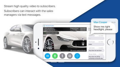 Autoxloo’s SimCasts MPS application allows sellers to simulcast a high quality video of their vehicles at the auction. Presenters can quickly find a car for broadcasting from the list of inventory by using the filters. They have a possibility to adjust their video presentations on customer’s demand: zoom in or out any car details or areas, show the interior and detalize the exterior, etc. Several sellers can broadcast video streams for one vehicle at the same time. Subscribers can view multiple simulcasts at a time and interact with the presenters via text messages. For the watcher’s comfort a seller is able to adjust the camera focus and the flash to improve the stream quality. The video can also be muted. A presenter can quickly switch to the next vehicle with one tap. Take advantage of the flexibility in auction video streaming with the SimCasts MPS application!