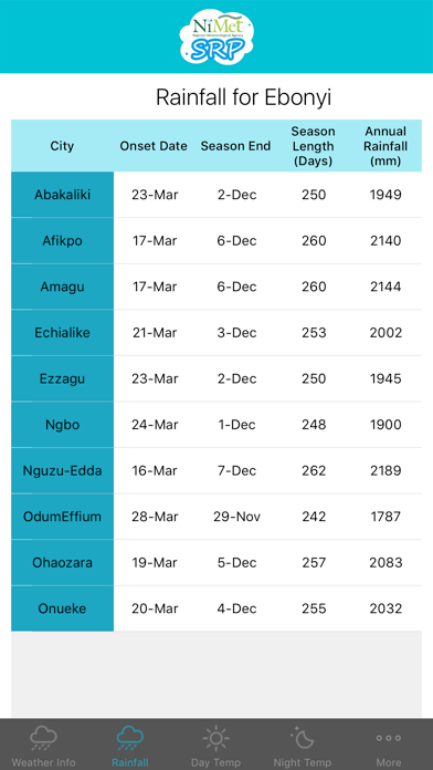 The Nigerian Meteorological Agency (NiMet) has produced the 2017 edition of the Seasonal Rainfall Prediction (SRP) Mobile App in fulfillment of its mandates of effectively monitoring the weather and climate of Nigeria, provision of relevant meteorological information, advisories and early warning services to the various weather-sensitive sectors of the Nigerian economy. This prediction constitutes a decision support tool for Nigerians, as it provides critical information to enhance informed decisions, especially for planners, policy makers, and operators of the various rainfall-sensitive sectors of the economy. Such sectors include agriculture, water resources management, environment monitoring, health, disaster management and a host of other weather-sensitive sectors. Features of App • Day and Night Temperature forecast • Onset and Cessation dates of the growing season • Length of the Season • Annual amount of Rainfall • Weather Notifications and Updates delivered to your phone • Feedback Form that allows users directly contact NiMet weather experts • Get a two days Weather Forecast and also watch Daily Weather Forecast Video