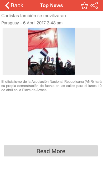 Top Paraguay News, Paraguay’s fastest news app provides breaking news alerts from trusted daily national and international newspapers in Spanish & English languages. Top Paraguay News app brings all the headlines of major newspapers in the palm of your hand.If you want to stay up to date with what happens in your country and use as little time as possible, then this app is what you need! It is a News Aggregator App but unlike other feature rich news readers, it will bring you directly to the news without wasting any time messing around with the user interface or news loading. Stay informed with breaking news alerts. Top Paraguay News offers fast, simple and clean reading experience to avid news readers in Paraguay and abroad. Stay up to date with everything that matters in the Paraguay. It is the best app for the daily reader. Download Top Paraguay News and get started today—it’s free! FEATURES - Very fast, intuitive and lightweight newsreader - Immediate & simple to use - Optimized for low bandwidth usage - Share the news with friends through mail, social networks, Facebook, Twitter, WhatsApp or any other app you have installed - Swipe Left – Right to quickly read news articles like reading a magazine - Bookmark articles to read later - Get fastest breaking news push notification alerts - Customize your app theme color - The best for the daily reader SUPPORTED NEWSPAPERS - ABC Color - Paraguay - Última Hora - HOY - E'a Disclaimer – All copyrights©, trademarks™, registered® materials, icons, contents, logos, graphics, images and/or data are property of their respective owners.