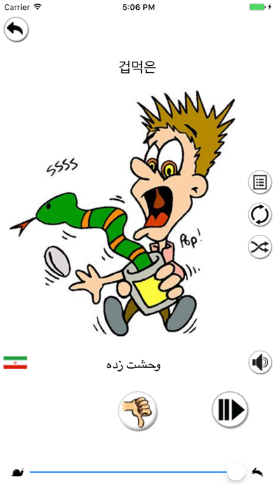 무료로 아주 멋진 음성 사진 사전을 이용해보세요. 5,300 개의 유용한 단어들에는 음성이 있으며 높은 품질의 아주 재미있는 사진(레벨 A1-B2)들이 있습니다. 하나를 듣고 다른 하나를 듣는 2개의 원어민 음성을 가진 그림 사전앱은 이것뿐입니다! 오디오 품질:전문성이 있는 원어민이 발음하였으므로 단어 연습과 발음을 올바르게 할 수 있습니다. 각 카드에 대해 2개 언어가 들려주는 시간을 조정할 수 있습니다. 핸즈프리 모드는 운전할때, 요리할때, 걷거나 손을 사용할 수 없을 때 아주 유용하게 사용할 수 있기 때문에 기기를 보지 않고도 학습 할 수 있습니다. 각 카테고리에는 유형에 따라 단어 목록을 걸러낼 수 있습니다: 미학습 학습 플래시 카드를 이용해서 단어를 기억하세요: 듣고(그리고 그림을 봅니다) 말하거나 스스로 번역에 대한 생각하고 나서 올바른 번역을 들어봅니다. 단어를 알고 있다면 손으로 카드를 눌러 "엄지 위" 을 해주세요. 그렇지 않으면 카드는 "엄지 아래" 카테고리에 계속 남아있게 됩니다. 별다른 노력없이 플레이 하며 배우는 것이 더 좋은가요? 각 카드(그림,음성과 2언어의 여러개의 조합)를 연속적인 4개의 게임으로 학습하세요. JooJoo의 방법은 성공적으로 단어, 음성과 사진을 성공적으로 조합하여 효과적인 학습을 할 수 있게 합니다! 언제 어디에서라도 학습하세요: 인터넷 연결이 필요 없습니다. 앱에는 광고가 없습니다. 앱은 무료이며 여러. 앱내에서 다른 카테고리를 적은 돈으로 구매하실 수 있습니다. 앱은 어떤 주제를 다루나요? 집에서 사람들 신체 및 건강 도시 음식과 음료 진행되는 학교에서 작업 스포츠 취미 지구와 자연 세계의 대부분 원어민이 사용하는 언어를 다루고 있습니다: 영어 (오디오 포함) 프랑스어 (오디오 포함) 독일어 (오디오 포함) 스페인어 (오디오 포함) 이탈리아어 (오디오 포함) 페르시아어 (오디오 포함) 중국말 (오디오 포함) 아프리카 어 알바니아 암하라 어 아라비아 말 아제르바이잔 벨로루시의 비하리 보스니아 어 불가리아 사람 카탈로니아 사람 중국말 크로아티아 사람 체코 사람 덴마크 말 네덜란드 사람 에스토니아 사람 핀란드어 조르지아 주 사람 그리스 사람 헤브라이 사람 힌디 어 헝가리 인 아이슬란드 어 이보 인도네시아 인 아일랜드의 일본어 카자흐스탄 한국어 라트비아 사람 리투아니아 사람 마케도니아 어 말레이 사람 몽고 어 네팔 노르웨이 인 광택 포르투갈 인 루마니아 사람 러시아인 세르비아 사람 슬로바키아 사람 슬로베니아 스와힐리어 스웨덴어 타갈로그어 태국 사람 터키어 우크라이나 말 우르두어 베트남 사람