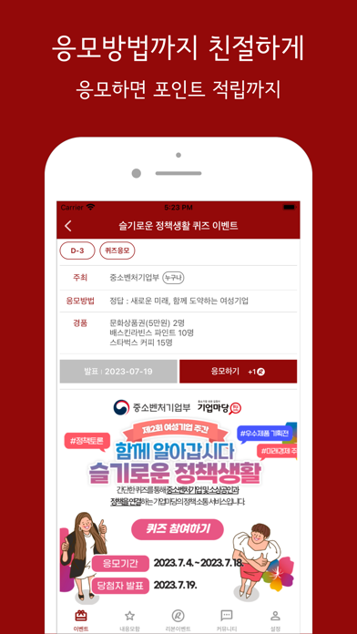 경품모아와 함께 일상의 소소한 행복을 찾아요. 바쁜 일상 속에 가볍게 응모할 수 있는 쉽고 간단한 이벤트를 모아 두었어요! 리본을 모아 모바일 쿠폰으로 교환할 수 있어요! 1.꼼꼼한 확인 후 목록에 올려요. -모바일에서 가볍게 응모할 수 있는 간단한 이벤트 -인지도/신뢰도를 바탕으로 믿을 수 있는 주최사가 진행하는 이벤트 -나의 개인정보를 지킬 수 있는 이벤트 2.편리함을 더하는 유용한 기능이 있어요. -이벤트 응모팁(응모방법, 퀴즈 정답) 제공 -응모한 이벤트가 저장되는 ‘내응모함’ (+당첨자 발표가 되면 알림을 받을 수 있답니다.) 3.특별한 포인트 ‘리본’ 을 모아요. -이벤트 응모 등 다양한 활동으로 모은 리본은 모바일 쿠폰으로 교환할 수 있어요. * 이 앱에서 진행되는 경품 이벤트들은 애플 또는 경품모아 와 무관합니다.