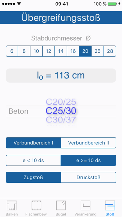 Mit dieser App können Sie ganz einfach die Querschnittsfläche der Balken- oder Flächenbewehrung sowie die Bügelbewehrung ermitteln. Außerdem kann damit die Verankerungs- und die Übergreifungslänge (Stoßlänge) der Bewehrung nach EC2 berechnet werden. Die Richtigkeit der Ergebnisse ist vom Anwender zu überprüfen. Haupt Merkmale: • Ermittlung der Querschnittsfläche der Balkenbewehrung • Ermittlung der Querschnittsfläche der Flächenbewehrung • Ermittlung der Querschnittsfläche der Bügelbewehrung • Ermittlung der Verankerungslänge von Stäben • Ermittlung der Übergreifungslänge von Stäben • Metrische Einheiten DESCRIPTION: A calculator for "area of rebars" and "overlap / development lengths" in reinforced concrete. (It's in German with metric units and based on EC2 code.)