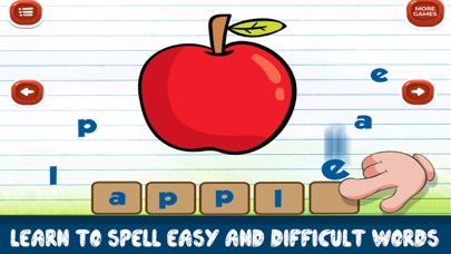 EduLand brings you Educational Spelling games for, helping learn how to spell and recognise words in English in a fun and easy way. More than 80+ spellings to learn with pictures. Learn to Spell English Words With colourful cute cartoon pictures including Animals, Vehicles , Foods, Fruits and Vegetables, and improve child English vocabulary skills every day. The game is designed to make you think smart and identify images and English words. Spelling School teaches over 80 most commonly used words. These words are divided into 3 levels of difficulty ; Easy , Medium and Difficult. How To Play? Just Drag and drop the letters to create a word correctly describe the picture in each level. The game will display a picture along with some letters. The goal is to select the correct letters to spell the picture correctly. Kids Learn Spellings is a delightful fun filled game that blend letters alphabets into words, read and form simple words, identify spoken words and learn spellings.