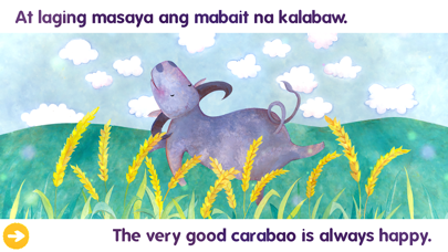 The good carabao is a good role model. He always does good things. He gets along with his fellow carabaos. He has a love for truth, kindness, and beauty. It is fun to count the things on each page, from 1 to 13. ●●● FILIPINO ●●● Dapat tularan ang mabait na kalabaw. Wasto ang kaniyang pag-uugali. Nakikisama siya sa mga kapuwa kalabaw. May pag-ibig para sa katotohanan, kabutihan, at kagandahan. Masayang basahin ang mga bagay sa pahina, mula 1 hanggang 13.