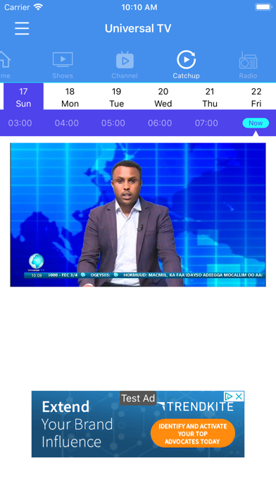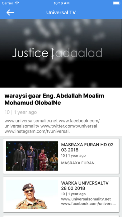 The first and largest Somali TV satellite network Universal Somali TV waa TV caalami ah lagana daawado aduunka oo idil, Universal Somali TV waxa ay kuu soo gudbineysaa wararka iyo barnaamijyo kala duwan. Using this app you will have following features: - Live streaming of TV. - Latest Programs and Category wise programs. - & days Catch-up Programme