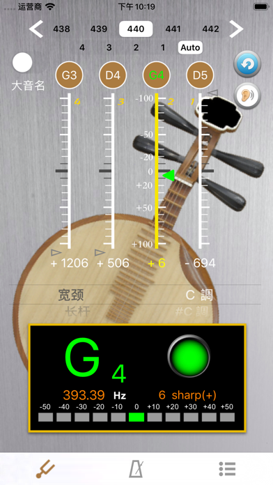 [YueQin Tuner] The simple user interface with noise filtering can help you tuning the 4 strings without any setting while activating the APP. When you pull the YueQin string, the pitch will be shown on the panel for the individual string by indicating signal high or low. [Function Description] ▪ Calibrate Piano Sound [Free]: Click on an open string then calibrate the sound with your YueQin. Piano Sound A4=442. ▪ The following functions are available once you purchase to unlock whole functions: ▪ A4 Frequency adjustment: choose 428~452 frequencies for A4 string. ▪ The scale for precision tuning is 10 cents for every sub-bit. The blue line represents the open strings start from. The green arrow means pitch is accurate and it will turn white once the pitch difference exceeds more than a sub-bit. ▪ The complete function, will visually tell you the pitch is good or not by lighting green or white. Users can easily adjust the string by the lighting arrow shown on the scale. We welcome you to feedback us for any questions, suggestions and comments regarding this APP.