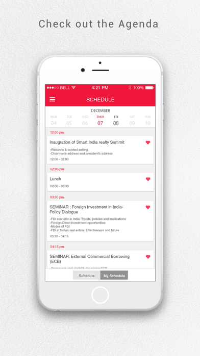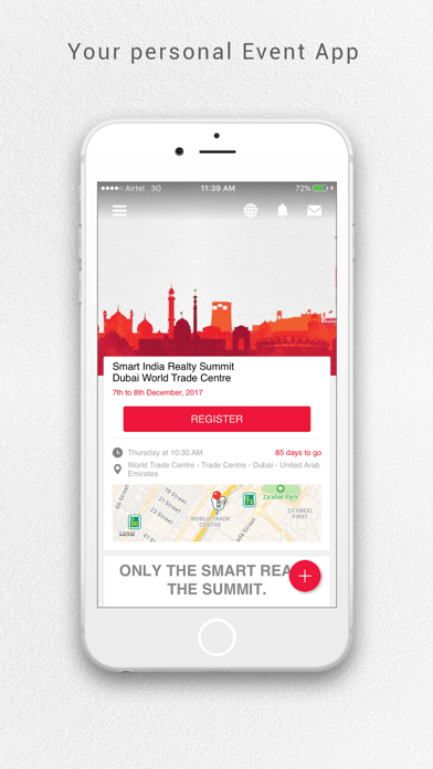 Use the Smart India Realty Summit app to enhance your event experience by connecting with the right people, maximizing your time at the event. The app will help you discover, connect and chat with attendees at the summit. This app will be your companion not only during the event but also before and after the summit, helping you to: 1) Connect with the attendees who have interests similar to yours. 2) Set up meetings with potential attendees (investors, mentors, industry CxOs) by using the chat feature. 3) View the summit program and explore sessions. 4) Create your own personalized schedule based on your interests and meetings. 5) Interact with the fellow attendees in a discussion forum and share your thoughts on the event and issues beyond the event. Use the app, you'll learn more. Enjoy the app and we hope you have a wonderful time at the Summit!