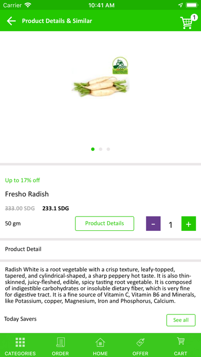 Single app for all your daily needs: Order thousands of products with just a tap; milk, eggs, bread, cooking oil, ghee, atta, rice, fresh fruits & vegetables, spices, chocolates, chips, biscuits, noodles, cold drinks, shampoos, soaps, body wash, pet food, diapers, electronics, other organic and gourmet products from your neighbourhood stores. Shop on the go and get groceries, fresh fruits & vegetables, cakes & other bakery items, meats & seafood, cosmetics, flowers, mobile accessories and baby care products delivered to you. Choose from over 5,000 products at prices lower than supermarkets. Schedule delivery as per your convenience.