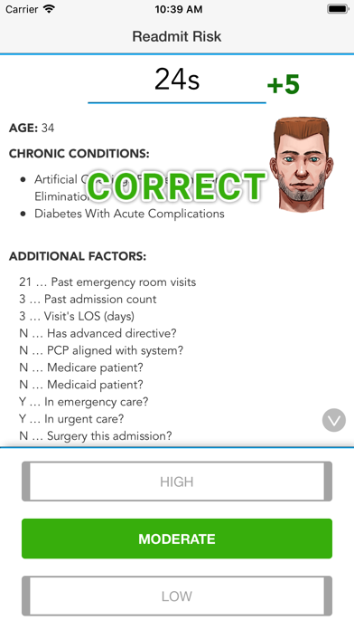 Readmission Risk Challenge offers an engaging way to learn about hospital readmission risk factors. With a gaming approach, this app can help sharpen the understanding of what factors increase the probability of a patient needing hospital readmission within 30 days of treatment discharge. This app uses an approach that categorizes a patient’s risk level of hospital readmission into low, moderate, and high; an approach that some hospital systems use to determine appropriate treatment needs. Users will work against the clock as they aim to correctly identify the risk level and earn the highest possible score. The user scores are presented on the results screen to encourage replay and improvement. Download today and see how you stack up against the challenge!