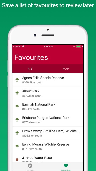 Fast, beautiful and easy to use National park explorer for Victoria, Australia. If you're ever out camping or are planning spots to go this app will help you find great places to visit. If you arrive at a campsite and it's full, you can easily find campsites nearby. Features: - Open a location directly in Google maps or Apple maps to get driving directions (useful as many National Park locations are missing or incomplete on both of those platforms). - Easily find campsites, landmarks and toilets nearby. - Search through thousands of amazing places to visit in Victoria in an instant, without an Internet connection. - Filter only the types of landmarks you want to see. - Fast, beautiful and easy to use.