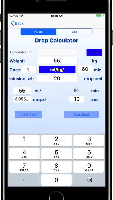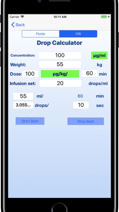 With Drop Counter For All, you will be able to set up the flow rate of a gravity infusion set, easily, and precisely. You could choose your infusion set type and the countdown time. Just look at the drop falling down and click on your screen. An acoustic signal and a vibration will tell you when the data acquisition is done. The flow rate is then calculated. To increase accuracy, chose a higher countdown time.