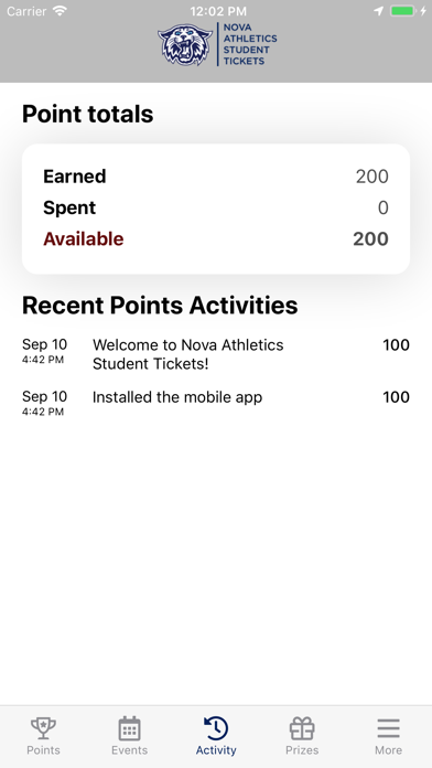 With the Nova Athletics Student Tickets App, you can: - See upcoming games that you can register for and/or attend for points - Check your point total and see how you compare to other students - Download mobile game tickets directly