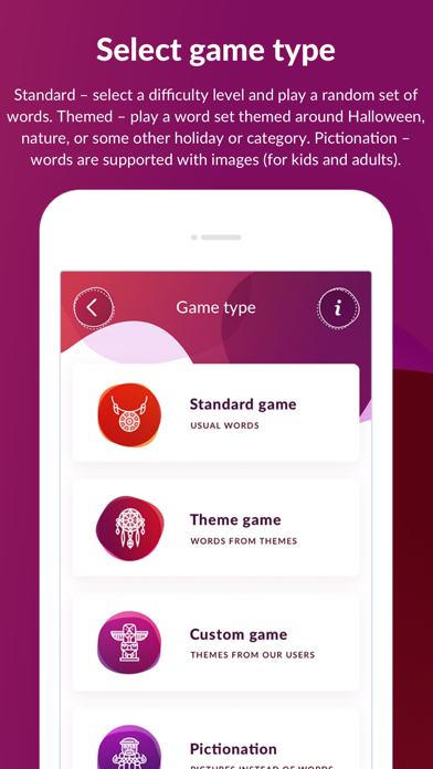 Alias or Charades - guess word board game" is a new free version of the world-famous activity Alias board game. The objective of Alias is to explain words to team members. For each word that's correctly guessed by one of your teammates, your team gets a point. Our app lets you play Alias anywhere without a ton of paper cards and a board. Catch new features! Steelkiwi has released a web version of the Alias or Charades game where you can comfortably add your own word sets and use them on your phone. Now you could add set on any language. Play your own sets with your friends or share it to all word. Cool, isn’t it? Check it out here: https://getalias.co/ The best feature of free Alias is it's themed sets of words. We’ve already prepared Space, Party and Food sets. We’re planning to make lots more soon. You can also play the standard Alias to set your difficulty level and play with a random set of words. A separate Alias game mode for kids with pictures alongside words is also available in this version. Alias or Heads Up is an awesome game for both small and large groups. Having a party or a picnic? Don’t know what to do with your family on a rainy day? You could play Alias. It’s great for all ages. All you need is at least four people and the app. Another similar games: Alias, Charades, Heads Up, Head Bang, Guess word, Crocodile.