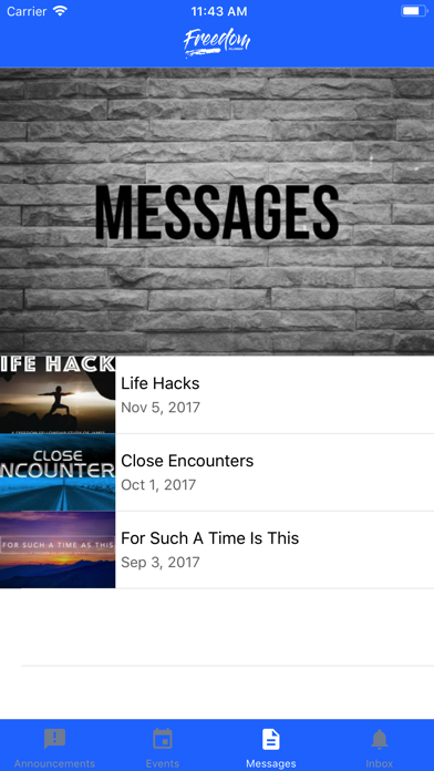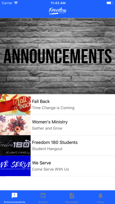 The Freedom Fellowship app helps you to know what's happening with all of the ministries of our church. With this app, you are able to follow the notes during messages, keep up-to-date with the event, meeting & activity schedules through notifications, reminders, and our calendar. Download the app today and get involved with Freedom Fellowship! For more information: FreedomAustin.org