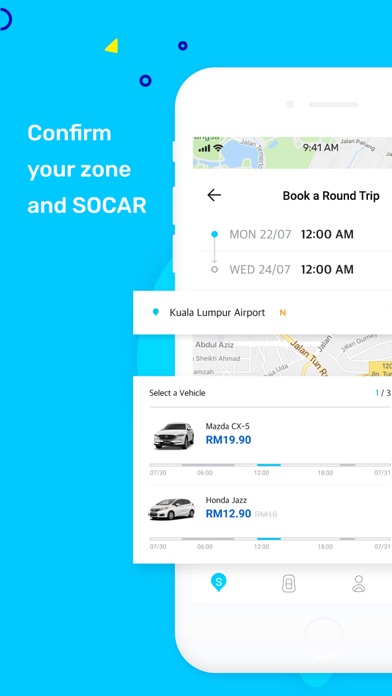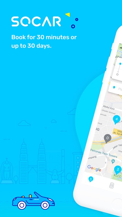 No matter how short or long your journey is, SOCAR is here to make your driving experience a breezy one with our car-sharing app. Drive for free on your first 2 hours, on us. Just tap, unlock, and drive from as low as RM8 an hour. You’ll be covered with 20km mileage, car insurance and personal accident so you can drive with peace of mind. Sign up in 3 simple steps: 1. Prepare your driving license and IC/Passport. 2. Verify your number. You’ll receive an SMS on your account status. 3. SOCAR anywhere, anytime! To end your reservation, please return your SOCAR only at designated SOCAR parking spots (same as the pick-up location). For more information, please visit socar.my.