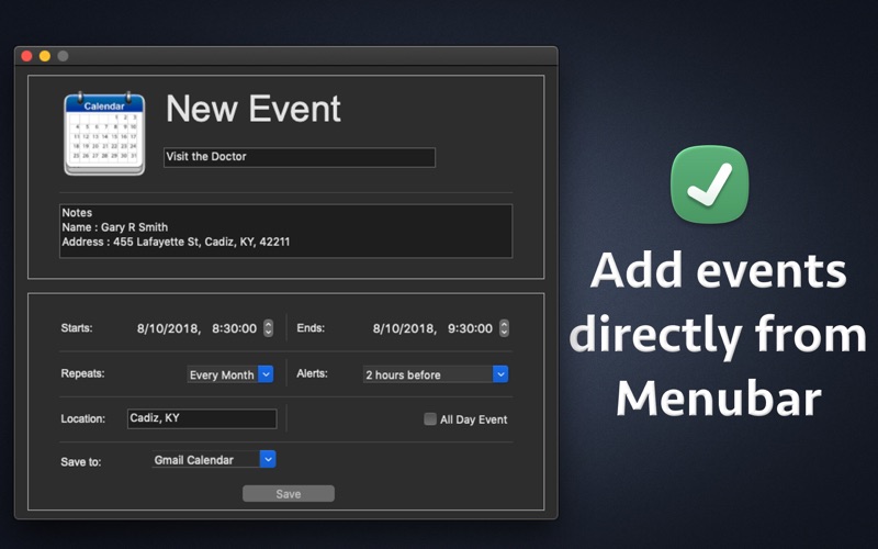 The application adds an icon in the Menubar which displays the day, date, time and month. When you click on the Menubar icon, it shows the Calendar, analog clock, week numbers & upcoming Calendar events. Menubar is present at the top of the screen where you see time. Since the information is directly displayed in the Menubar, you will be able to know today's date, time, month & day just by looking at the menubar. You could also set the desired Font Name, Size and Colour of the date and time that is displayed in the Menubar. The date & time could also be set to appear in Default, lowercased or uppercased letters. These options make the date and time look more beautiful and appealing in the Menubar of computer. The calendar also shows week number of the year for each week of the month. To view the calendar just click on the Menubar icon. The application supports all types of calendar that are setup on your Mac’s Calendar. This includes all types of iCloud Calendar, Google Calendar, Gmail Calendar, Holiday Calendar, Birthdays and other Calendars. Hotkeys are also supported. Just press Cmd and F1 key together to display the calendar quickly. On pressing the hotkey, the calendar will be displayed at your mouse's location. On laptop, please press fn+cmd+f1 keys together to view the calendar. Using the application you could quickly see the calendar of Next month and Previous month from the menu. It also shows Week of the Year and Week of the Month. Various different date & time formats are also supported.Using this feature you could setup the date & time format as per the needs. For example : You could setup the application to show the date & time in only Month and Year i.e. Month/Year format or you could set it up to display only today's date.The application offers more than 50 different date and Time formats. The application also has a feature called "Custom Formatting" for the date and time. using this feature, you can set your own custom formatting for date and time. This option is available from the Main Window of the application. The date and time are automatically displayed in the language that is set on the computer. For example : If you are using Deutsch (German) on the computer/laptop, the date time will be displayed in the Deutsch language. An example of date time in this language is : Freitag, 16. Februar 2018 . If english is being used, the date time will be displayed in the english language. Once installed, the application integrates with the System Calendar & starts to show the upcoming calendar events directly in the Menubar. You could directly view the upcoming events by clicking on the Menubar icon of the application. To view more details on the event, just hover the mouse over it and the application will show many more details about the event like its notes, location, start time and end time. The application also lets you add new Events directly from the Menubar.To add a new event, just click on the Menubar icon and click on the menu option "Add a new Event". You could setup the recurrence, start time, end time,Location & Notes of the new Event. Also, you could setup the Alerts type. For example : you could select to be alerted 10 minutes before the event occurs or 1 day before the event. The application supports navigating through all months in the Menubar. For example : You could navigate through January,February,March, April, May, June, July, August, September, October, November and December Calendar. In order to Navigate through these month’s calendars, just click on the Left and Right Arrow keys when the Menubar Calendar is open in the Menu. Also, you could Navigate to the Next Year’s calendar as well. For example : You could Navigate to 2021 Calendar or 2022 Calendar by using these Arrow buttons. Notes : a) Once setup, the alerts are managed & shown by the system calendar. b) The screenshots have been taken using the Dark Mode in Mac OS.