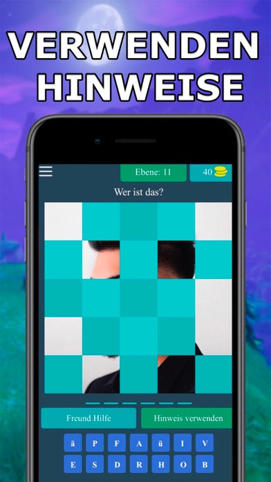 Erraten Sie Ihre Lieblings-Youtuber! -Erraten Sie PALUTEN, DOMTENDO, GERMANLETSPLAY, PIETSMIET und andere. -Testen Sie sich und versuchen, sie alle zu erkennen, können Sie es tun? -Klicken Sie auf den Block, um Bilder zu öffnen und tippen Sie auf die Buchstaben, um den Namen zu wählen! -Spielen Sie jeden Tag, um Bonus-Münzen zu erhalten! -Wenn Sie auf einer Ebene stecken, können Sie auf "Use a HINT" klicken, haben Sie drei Arten von Hilfe: Mit dem Schlüssel "fragen Sie Ihre Freunde" können Sie einfach fragen, Hilfe für Ihre Freunde. Deutsche Youtuber erraten - ist ein integraler Bestandteil der modernen Welt. Glaubst du, du bist ein Profi in diesem Geschäft? Wie weit können Sie gehen? Wer von Ihren Freunden kennt beste youtubers? Probieren Sie es mit einem neuen Spiel Deutsche Youtuber erraten! Seien Sie im Trend!