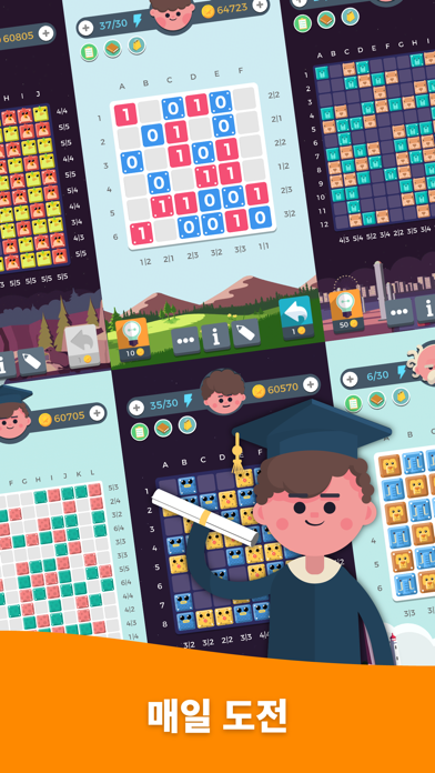 "라이프 오브 로직"은 3가지 간단한 규칙을 만족시키면서 보드를 0과 1로 채우는 것이 목표인 멋진 논리 기반 퍼즐입니다. 1. 옆에 서로 같은 숫자 3개가 없어야 함. 2. 각 행과 열에 동일한 수의 0과 1이 있어야 함. 3. 동일한 행이나 열이 없어야 함. 어려운 퍼즐을 해결해 기억에 남는 이정표로 가득 찬 인생에 대한 매력적인 이야기를 전개해 보세요. 매일 그 날의 과제를 풀면서 두뇌를 운동하세요. 흥미진진한 실시간 경기에서 다른 플레이어와 싸워 보세요. 글로벌 토너먼트에서 경쟁해 최고의 해결사가 되세요. 새로운 논리의 삶에 오신 것을 환영합니다! ________________ Terms of Service: https://latte.games/terms-of-service/ Privacy Policy: https://latte.games/privacy-policy/