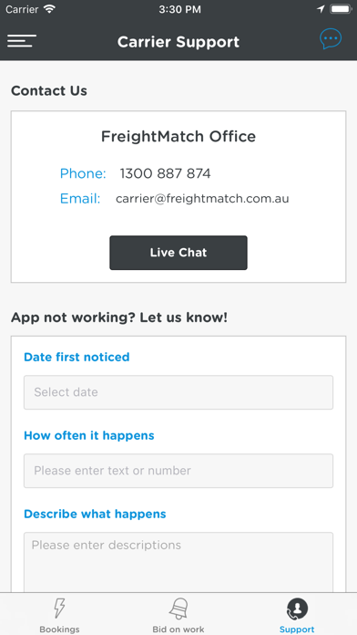 FreightMatch for Carriers' allows freight carriers from across Australia to connect with customers that need stuff moved. Provides electronic work tracking, POD capture, and routing to drivers. Note: GPS required for routing and ETA calculation. Continued use of GPS can reduce battery life, due to the nature of the technology.