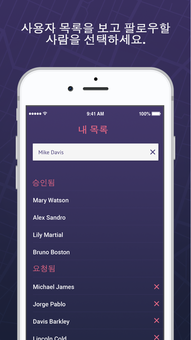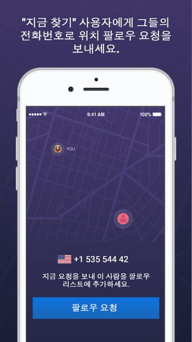 "FindNow는 최고의 위치 공유 및 위치 찾기 애플리케이션입니다. 전화번호를 통해 팔로우를 원하는 사람에게 연락하세요. 여러분의 휴대폰에서 FindNow를 통해 전화번호를 검색하여 친구와 가족을 쉽게 찾을 수 있습니다. 앱을 설치하고 연락처에서 선택하거나 전화번호를 입력하여 친구에게 팔로우 요청을 보내기만 하면 됩니다. 친구가 팔로우 요청을 수락하면 친구의 위치를 팔로우할 수 있습니다. 이를 위해서는 구독이 필요합니다. 팔로우를 원치 않으시면 언제든지 팔로우 요청과 팔로워를 차단하거나 삭제하실 수 있습니다. 팔로우 요청을 수락하는 사용자만 팔로우할 수 있습니다. 특징 - 사용자 목록에 있는 사람들의 실시간 위치를 팔로우할 수 있습니다. - 전화번호 검색을 통해 팔로우 요청을 보내세요. - 위치 기록: 팔로우 중인 사람이 온라인 상태가 아니더라도, 마지막 위치를 알아낼 수 있습니다. - 항상 안전을 먼저 생각하세요: 언제든지 팔로워를 차단할 수 있습니다. - 프리미엄 회원만 사용자 목록을 작성하고 무제한으로 친구를 추가할 수 있습니다. FindNow는 백그라운드에서 작동하는 GPS를 통해 사용자의 위치 정보를 사용하며 이로 인해 배터리 수명이 줄어들 수 있습니다. 구독 안내: 검색하는 번호가 FindNow 사용자인 경우, 해당 사용자의 위치 정보를 추적하는 권한 요청을 보낼 수 있으며 해당 사용자가 수락하면 해당 사용자의 위치를 구독 기간 내내 팔로우할 수 있습니다. 7일 무료 체험으로 멤버십을 시작하세요. 구독 기간은 1개월이며 매월 구독이 갱신됩니다. 요금은 {PRICE}부터이며 선택하시는 패키지에 따라 다를 수 있습니다. 유료 자동 갱신 구독을 시작합니다. 요금 청구를 원하지 않으시면 체험 기간 내에 취소하셔야 합니다. • 요금은 구매 확정 시 iTunes 계정에 청구됩니다. • 늦어도 현재 구독 기간이 종료되기 24시간 전에 자동 갱신을 해제하지 않으면 구독이 자동으로 갱신됩니다 • 현재 구독이 종료되기 24시간 이내에 갱신 요금이 계정에 청구되며, 갱신 요금을 확인할 수 있습니다 • 구매 후 사용자는 구독을 관리할 수 있으며 사용자의 계정 설정으로 이동하여 자동 갱신을 해제할 수 있습니다 무료 체험 기간에 사용하지 않은 부분(제공된 경우)은 사용자가 해당 출판물에 대한 구독을 구매하면 소멸됩니다(해당하는 경우). • 다음 주소를 입력하여 구독을 취소하실 수 있습니다: https://support.apple.com/en-us/HT202039 • 개인정보 처리방침: https://findnowme.com/privacy • 이용 약관: https://findnowme.com/terms"