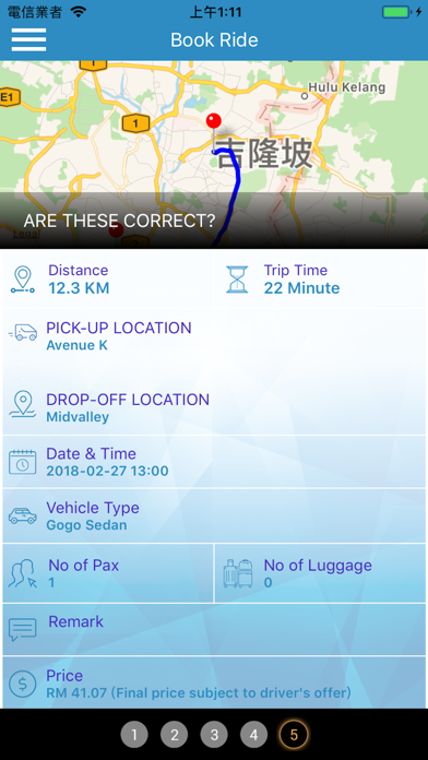1. Choose service type 2. Select pickup point and destination 3. Select vehicle type 4. Completed! Wait for your driver and enjoy your ride.