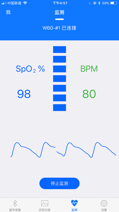 本款APP软件专为管理睡眠呼吸监测手表无创检测到成人及儿童(体重大于30公斤)的血氧饱和度值和脉率值。 手机端安装了本款APP软件后,通过蓝牙搜索,来搜索有效距离内睡眠呼吸监测手表发出的蓝牙信号,实现了手机端与睡眠呼吸监测手表的数据互联,从而达到了从手机端下快速显示并测量人体的血氧饱和度值和脉率值