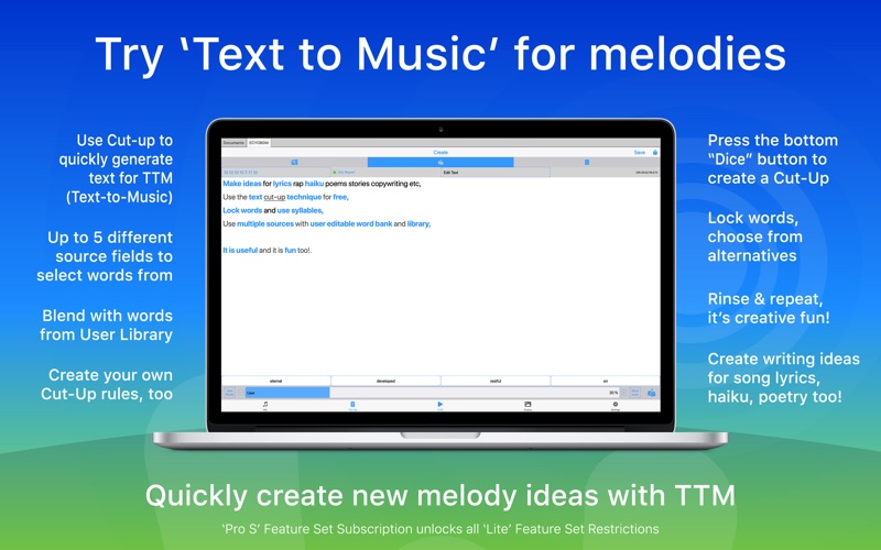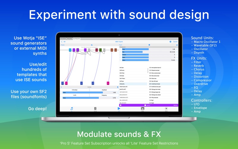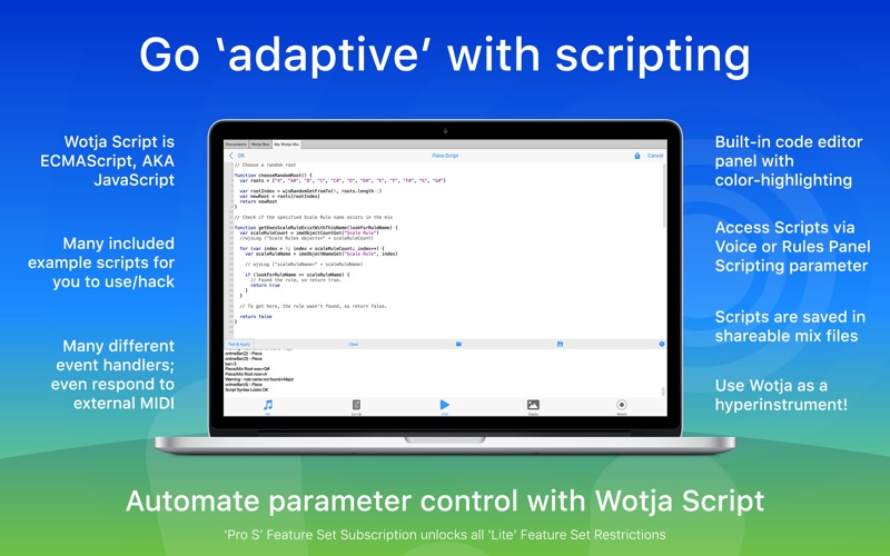 Wotja is an awesome 'generative music' creator, lab & player system. It generates music, MIDI, melodies, cut-up text and lush ambient & drone soundscapes. It has a rich history, too, being the evolution of SSEYO Koan, Noatikl, Mixtikl & Liptikl. This app is both FREE and AD-FREE. Pro options: 'Pro S' Subscription or 'Wotja Pro 20'. ALL-IN-ONE CREATIVITY SYSTEM • Music Creator: Easily create beautiful music & MIDI ideas using powerful generative, text-to-music & randomization techniques • Music Lab: Experiment with composition, mixing, sound design & scripting for interesting results ranging from experimental right through to ambient and drone • Music Player: Auto-generate a continuous stream of mixes with 'Flow’ or play a playlist - use for relaxation, reflection, meditation, sleep & installations • Lyric Generator: Use the 'cut-up' technique to create ideas for song lyrics, haiku, poetry and text-to-music etc. WOTJA USER REVIEWS "Great app, complex, deep and unique", "Simply the best", "Masterpiece" VIDEO TUTORIALS • https://youtube.com/intermorphic KEY FEATURES • Create, edit, randomize, save & export mixes, mix boxes, sound & FX networks, scripts & cut-up text • 'Flow' mode for a succession of freshly generated mixes • 100s of gorgeous generative music templates & Sound/FX presets • 48 independent content cells in 12 tracks for live mixing/generative cell sequencing • Music Engine (IME) with 130+ parameters for generative (MIDI) music generation including a 'text to music' capability for melodies • Sound Engine (ISE) with ’Macro Oscillator 1', a port of the popular open-source sound generator from Mutable Instruments, plus many other synth & FX units + presets • Text Engine (ITE) supporting word locking, syllable rules, word alternatives, 5 source fields & more • Wotja Script (ECMAScript AKA JavaScript) for programmatic control of parameters • 2 built-in Albums of relaxing mixes • Support for: Multi-channel In/Out; Recording to WAV, MIDI & Video; SF2; Sleep timer; Dark/Light UI; iCloud etc. • Opens Noatikl, Mixtikl & Liptikl files • Personal Live Use (LU) Licence for Feature Set AVAILABLE FEATURE SETS • 'Lite' (Default, no Subscription required): Restrictions - 10 min auto-timeout (press play to restart); Track 1 editing only; Ch1 MIDI In/Out only; various recording & other restrictions (see website) • 'Pro S' (In-App Subscription required): All 'Lite' Feature Set Restrictions are unlocked IN-APP SUBSCRIPTIONS Subscription Groups 1 and 2 are *independent* of each other. Subscriptions are easy to cancel at any time. Group 1: Feature Set • Pro S ($1.99) - Unlocks ’Lite’ Feature Set Restrictions Group 2: Commercial Live Use (LU) / Tip Jar Check EULA for permitted use and tiers. NB: You can also use these Subscriptions as a form of Tip Jar! • C0 License ($1.99) • C1 License ($3.99) • C2 License ($9.99) • C3 License ($19.99) Subscription Info: • Prices shown are for US region and may change from time to time. • Each Subscription Period is 1 month, auto-renewing. • Payment will be charged to iTunes Account at confirmation of purchase. Subscription automatically renews unless auto-renew is turned off at least 24-hours before the end of the current period. Account will be charged for renewal within 24-hours prior to the end of the current period. Subscriptions may be managed by the user & auto-renewal may be turned off by going to the user's Account Settings after purchase. HISTORY From a double BAFTA award-winning dev team, Wotja is the continued evolution of the legendary 'SSEYO Koan', Noatikl, Mixtikl, Liptikl & Tiklbox. It uses a combination of AI Techniques & heuristics we’ve been crafting for nearly 30 years. LINKS • Info, FAQ, Guide, Videos & More: https://intermorphic.com/wotja • Privacy: https://intermorphic.com/privacy • Terms: https://intermorphic.com/tos FEEDBACK Something not working right? Please do get in touch via our Help Page 'Contact Us' options. Thank you!