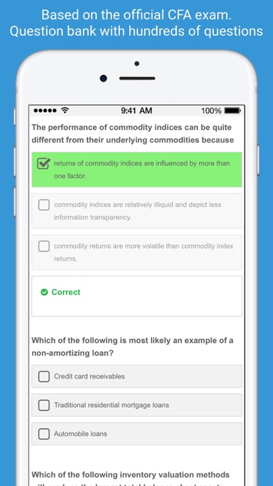 CFA Level 1 Exam Prep 2018 app is an excellent tool for self-study and exam preparation. NO registration required, NO in-app purchases and NO ads. Features: • Three practice modes – Choose between 10, 25 or 50 questions per test • Question bank with over 600 practice questions. These questions are based on the official CFA Level 1 exam • The app randomizes questions and answers each time you start a practice test • Instant feedback on each question on whether you answered right or wrong, and a summary when all the questions have been answered • Glossary of key CFA terms