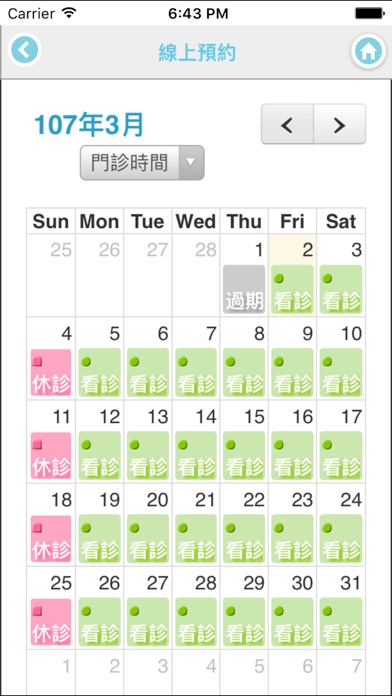 * 線上即時預約:自由選擇適合的時段約診 * 查看預約資料:隨時查看自己的預約時間 * 就診推播提醒:不會忘記預約的看診時間 * 是否赴約確認:告訴是否能準時赴約 * 即時問與答:有問題直接線上溝通 歡迎下載使用!