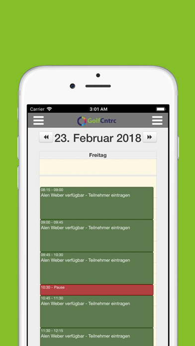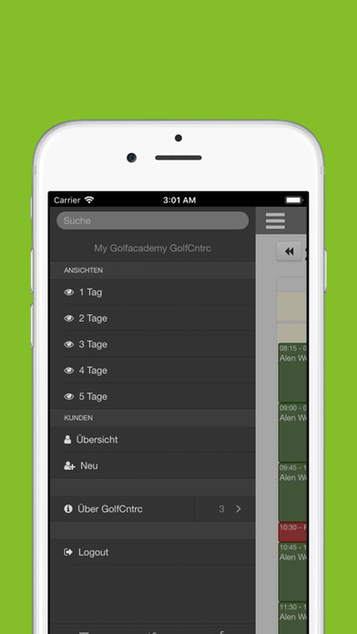 Buchen Sie bequem und einfach Ihre Golfstunden in der "My Golf Academy" über Ihr Smartphone und verwalten Sie Ihre Buchungen und Kundendaten.