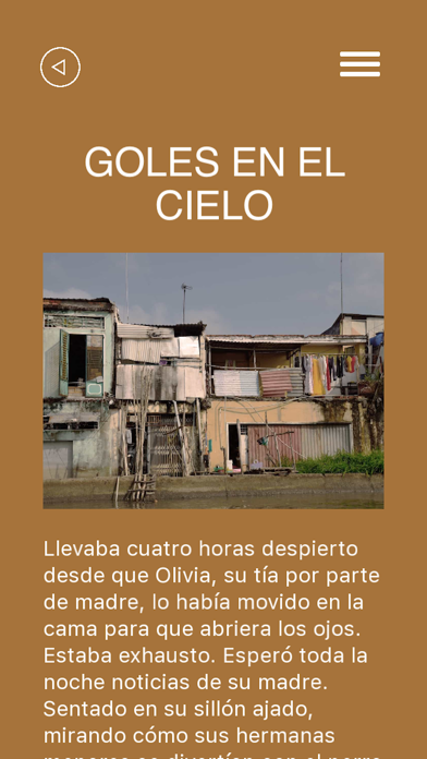 LANGUAGE: Only SPANISH - Libro interactivo de Aventura y Drama con múltiples finales. Atrévete a convertirte en el personaje principal de esta historia. Goles en el cielo es una Novela escrita por Andrés Lermité que hace homenaje a tres grandes futbolistas chilenos. Alexis Sánchez, Arturo Vidal y Gary Medel. Cada hecho de ésta novela es un elemento absolutamente real, puesto que fue extraído de la vida de estos futbolistas y, sobre todo, extraídas de la vida del Autor. Es una obra basada en hechos reales y transformada en una mariposa de alas en forma de metáfora. Carlos Román, el personaje principal, es quién posee en sus vivencias estas 4 vidas que supuestamente no tienen ninguna conexión, pero que tan sólo un hecho las hace una sola historia: La búsqueda de la Felicidad personal para darle alegrías a sus madres y hermanos o hermanas. Carlos se encarga de plasmar cada uno de esos hechos cruelmente reales. “GOLES EN EL CIELO” es un libro de aventura y sueños de un pequeño por convertirse en un crack del futbol. Una App de Novela de Aventura Interactiva con música e imágenes donde eliges tu propio camino. Toma decisiones para ir descubriendo sus múltiples finales "GOLES EN EL CIELO” escrito por Andrés Lermité ya esta disponible, como uno de los mejores libros donde encontraras nuevos y maravillosos reinos, decide el curso de la historia, conviértete en el personaje principal, escoge tu camino con cuidado y descubre nuestros múltiples finales. Esta historia dramatica es una aplicación, un PATHBOOK, es un libro interactivo de aventura, drama, relatos, novela, historias cortas y cuentos con imágenes, música, decisiones y múltiples finales. ¿Alguna vez has querido cambiar el final de tu libro favorito o tal vez uno de los libros interesantes que hayas leído últimamente quisieras otro final? ¡Ahora puedes hacerlo! Bueno, malo, inesperado, triste y, por supuesto, finales felices. textos originales, adaptaciones de libros clásicos, cuentos para niños, novelas y relatos están disponibles en esta aplicación de libros interactivos. Estamos creando nuevas posibilidades en el arte y el arte de contar historias donde los autores están limitados sólo por su imaginación. Sumérgete en nuestras aplicaciones, no son sólo un libro o solo cuentos interactivos, ni es un juego más para tu dispositivo móvil, los llamamos PATHBOOKS, mantenemos la esencia de la buena lectura haciendo uso de las nuevas tecnologías para creando una gran experiencia en nuestros lectores. GOLES EN EL CIELO es una app publicada por Living a Book. No es un gamebook, chat story o un libro de ficcion interactiva, es un Pathbook. Esta aplicación está disponible para descarga gratuita, descarga gratis y decide después si quieres comprar la versión completa. Descarga nuestro Pathbook hoy mismo. LIVING A BOOK A reading experience www.livingabook.com
