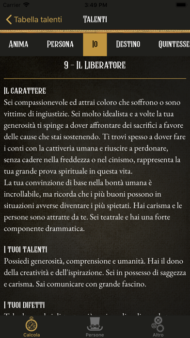 Questo software utilizza l'antica tecnica della Guematria e trasforma i tuoi dati anagrafici nei numeri che determinano il tuo carattere e il tuo futuro. Scopri i tuoi talenti, le predisposizioni lavorative e il tuo scopo nella vita. Potrai comprendere meglio anche i desideri e i lati ombra delle persone che ti stanno accanto. Scopri la tua carta numerologica! NOTE SULL'AUTORE Il software nasce da un idea di Guido Rossetti. Numerologo e ricercatore, fin dagli anni 90 è stato il primo a interpretare e a descrivere i numeri come Archetipi, in accordo con i principi di C.Gustav Jung, di James Hillman e di Marie Louise Von Franz. Il suo intento è di divulgare attingendo a basi scientifiche l'antica disciplina dei numeri, impegnandosi a coniugare tradizione e scienza. E' autore delle pubblicazioni: "Le Carte dei Numeri", "La numerologia e le chiavi della fortuna", "La numerologia e i cicli di vita" edizioni Il Punto d'Incontro e due monografie pubblicate dal mensile Riza Scienze. LA CARTA NUMEROLOGICA È FORMATA DA QUESTI NUMERI PRINCIPALI: • Numero dell'Anima - Descrive la componente più intima del carattere ed è associata all'Essere, in relazione ai desideri del cuore. • Numero della persona - Corrisponde alla "maschera sociale", la prima impressione che gli altri hanno di noi. • Numero dell'Io - Corrisponde alla personalità ed è associata al fare. L'analisi di questa cifra rivela i tratti generali del carattere e descrive le predisposizioni lavorative. • Numero del Destino - Descrive lo scopo di questa esistenza. Come una traiettoria ideale, il numero del Destino indica la strada da percorrere, affinché si possa realizzare il progetto di vita. • Numero della Quintessenza - Questo numero è un centro equilibratore, al quale possiamo riferirci per ritrovare il senso della nostra esistenza ed esprimere al meglio i nostri talenti. • Numero ombra - L'analisi dei numeri ombra consente di acquisire consapevolezza sugli aspetti della personalità che tendono a squilibrarsi, e che sono all'origine degli stress psicologici radicati sin dall'infanzia. • Numero dell'Anno personale - Il numero personale dell’anno in corso, identifica quale Archetipo è attivato in questi 12 mesi. Nella Numerologia, ogni anno della vita è parte di un modello di evoluzione che può essere descritto come un ciclo di nove anni. • Numero del Giorno personale - Questo numero descrive l'energia del giorno e aiuta a sintonizzarsi con le opportunità presenti. LA SCIENZA DEI NUMERI La numerologia è un antica scienza diagnostica del carattere, di cui Pitagora fu uno dei più illustri ed esperti conoscitori. Per i pitagorici i numeri erano principi cosmici divini, energie fondamentali, che erano alla base di ogni forma di esistenza. Ogni numero rappresentava un Archetipo, un modello tipico di comportamento, che recitava il proprio ruolo all'interno della psiche. UTILIZZI PRATICI DELLA NUMEROLOGIA La Numerologia ti aiuta a: - Conoscere meglio te stesso, per valorizzarti pienamente - Conoscere meglio il tuo partner, per gestire il rapporto in modo efficace - Valutare la compatibilità di coppia, per scoprire le affinità e migliorare la relazione - Aiutare i figli ad esprimere il loro potenziale - Scoprire i tuoi talenti, per realizzare il tuo scopo di vita - Conoscere in che fase ti trovi adesso, per orientarti nella vita e realizzare i tuoi desideri - Prendere decisioni importanti, sia in ambito personale, affettivo o lavorativo - Orientarti nel lavoro, per realizzarti professionalmente - Gestire una fase di cambiamento, per trasformare la crisi in un’opportunità Lingue attualmente disponibili: italiano