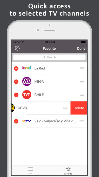 TV de Chile - TV chilena en línea y programas de TV gratis. TV de Chile es una aplicación de televisión que le permite ver los canales de televisión que le gustan. Personaliza y organiza canales de televisión y disfruta de verlos en cualquier lugar en cualquier momento. TV of Chile ofrece todos los servicios que necesita para una cómoda visualización de programas de televisión. La interfaz de usuario simple e inteligente hace que la observación sea tan cómoda como nunca antes. Equipo de soporte atento que siempre está listo para responder todas sus preguntas. Instale TV de Chile y obtenga el acceso instantáneo a la televisión de Chile en este momento IMPORTANT "TV de Chile" does not include any stored footage, recorded videos etc. There are no any videos in "TV de Chile". "TV de Chile" does not and will not relay any channels. All data used in the "TV de Chile" can be found in the Internet. It is combined it in a single program. All descriptions and images used in the "TV de Chile" are the property of their respective owners. If you still have any questions about functionality of "TV de Chile" or the TV sources embedded into it, please write on the email noted in the app description in App Store