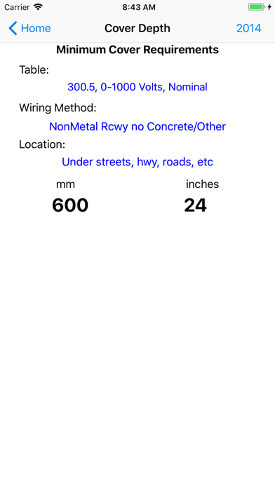 Updated for the 2017 Electrical Code. This app supports the 2008, 2011, 2014 and 2017 codes. This app will include all future enhancements prior to the NEC 2020 code, other Electrical Wiring Pro apps will receive bug fixes, but new features will be found here. New features include the 2017 NEC recommended Torques, the new derating for conductors above roof, and wire bending space for compact aluminum wires. AMPACITY AND WIRE SIZING per Article 310 + Size -> Ampacity (UPDATED) + Ampacity - Size (UPDATED) + Grounds - GEC and EGC Sizing + Dwelling Service and Feeder Sizing (From table or "83%" rule) - Adjustments for Ambient, # conductors and height above roof BOX FILL / WIRE BENDING SPACE + Wire, Device and Hardware Box Sizing + Cable option vs wires, e.g. for Romex + Wire Bending Space for Cabinets, Gutters, Motor Controllers etc (UPDATED) + Standard Box Wire and Ring Information CONDUIT FILL per Chapter 9 + Conduit Size Needed + How Full Conduit is given a set of wires + Max # of Wires Per Conduit + Conduit Info + Wire Info BASIC CONDUIT BENDING + Offset (simple or compound) + Parallel Conduit Spacing + Three Bend Saddle + Corner Obstacle + Segment Bend + Minimum Bend Radii per Code - Conduit Calculations in fractions or Inches RESIDENTIAL LOAD CALCULATIONS per Article 220 + Single Family Dwellings, including Part III (Standard), Part IV (Optional), Reduced Neutral Volt-Amps and Current + Multi Family Dwellings, including "House" Loads; Standard, Optional and Reduced Neutrals + Range (and other Cooking) Calculations VOLTAGE DROP per Chapter 9 + Voltage and % Drops + Wire Sizing for a given drop/% + Maximum Wire Length + Maximum Load + Impedance per Code OTHER + Recommended Torques + Cover Depth for buried wires and conduits per 300.5 and 300.50 + PIRE Wheel + Receptacle configurations + Phone/Ethernet pinouts