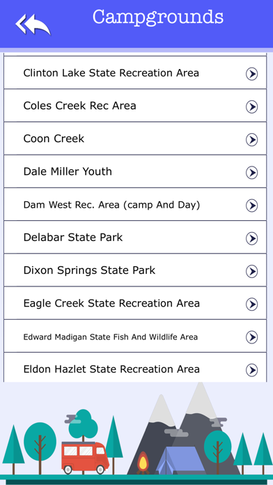 ◆Universal App for iPhone X/ iPhone 8/ iPhone 8Plus/ iPhone 7/ iPhone 7Plus/ iPhone SE/ iPhone 6s/ iPhone 6s Plus/ iPhone 6/ iPhone 6 Plus/ iPhone 5/ iPhone/ iPad/ iPad Pro/ iPod. This app Lists the all Campgrounds in illinois This is a premier iOS app catering to almost every information of illinois. It features 5 different modules providing information of the lllinois like Information,General Info, Campgrounds,Directions, Rout Map,Stay Safe, NearSearch. Here are the modules available in the illinois 1. General Information : ◆ Get the Basic Info about the illinois ◆ Information to know how to reach via various means to the destination. 2. Campgrounds : ◆ Incredible easy to use. ◆ Shows current location and campgrounds positions. ◆ Provides near by info of each campground (like Golf Course, Lakes, Amenities, Trails, Ski Areas, Marinas, Public land, Hotels, Address.) ◆ Campground Image. ◆ Get directions from current location to campground location. 3.Map : ◆ Fully zoomable offline map contains Point of interests on them along with interactive guide. Just tap on any poi you can get the information for that along with routing information. ◆ GPS facility is enabled to show the directions and route map. ◆ Has the call option and can check the address of the Campground. ◆ Once the user opens the Map, it points Lit of the Campgrounds. 4. State Parks *Incredible easy to use. *Simple design and detailed parks information! *GPS+Locations! *Get directions from current location to State Parks & National Parks. *Search Parks! 5. POI Search : ◆ Local search Search also acts as a Guide to help user in finding the directions from one place to another via GPS enabled Map. ◆ Find list of available Hotels, Attractions, Restaurants, Bars, Hospitals, Drug Stores, Banks, ATM's, Shopping malls, Pizza huts, Gas Stations and Railway stations etc. ◆ Predefined & Local search searches are available. It brings your Device one step closer to a full feature GPS system. It has a database pre-populated with more than 1200 Local search categories. You can find the places you are looking for without any typing. 6. About Camping: ◆ Daily based Itineraries ◆ Night life activities and safety precautions Getting around info in State, tips for moving around and commuting with safety tips.