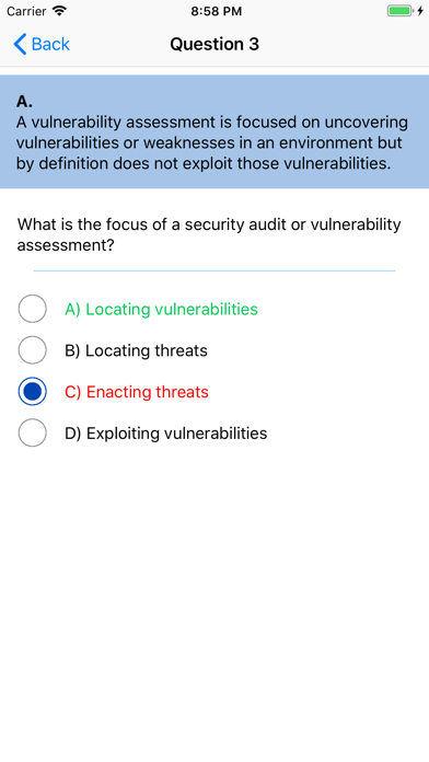 This application is your ideal companion for CEH v9 exam preparation. Covering all sections of the exam, the questions highlights essential topics like intrusion detection, DDoS attacks, buffer overflows, and malware creation in detail, and puts the concepts into the context of real–world scenarios. You will get access to: full–length practice exams, practice mode and hundreds of electronic flashcards, to help you ensure full mastery of the exam material. PRO Version features: - 1000+ questions to practice - No ads