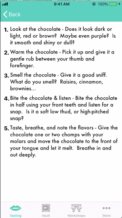 View other chocolate notes to get inspiration and information about specific chocolates while having full access to your own chocolate notes. A way of keeping all your chocolate notes in one place along with being able to look at other notes anonymously. Has the ability to take quick notes (workshops) when in group tastings.